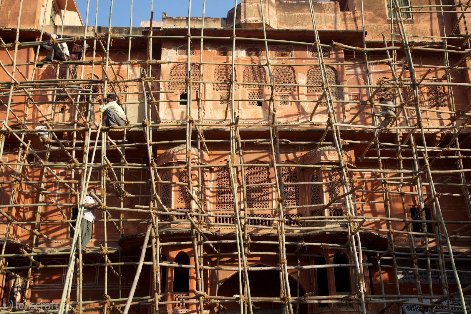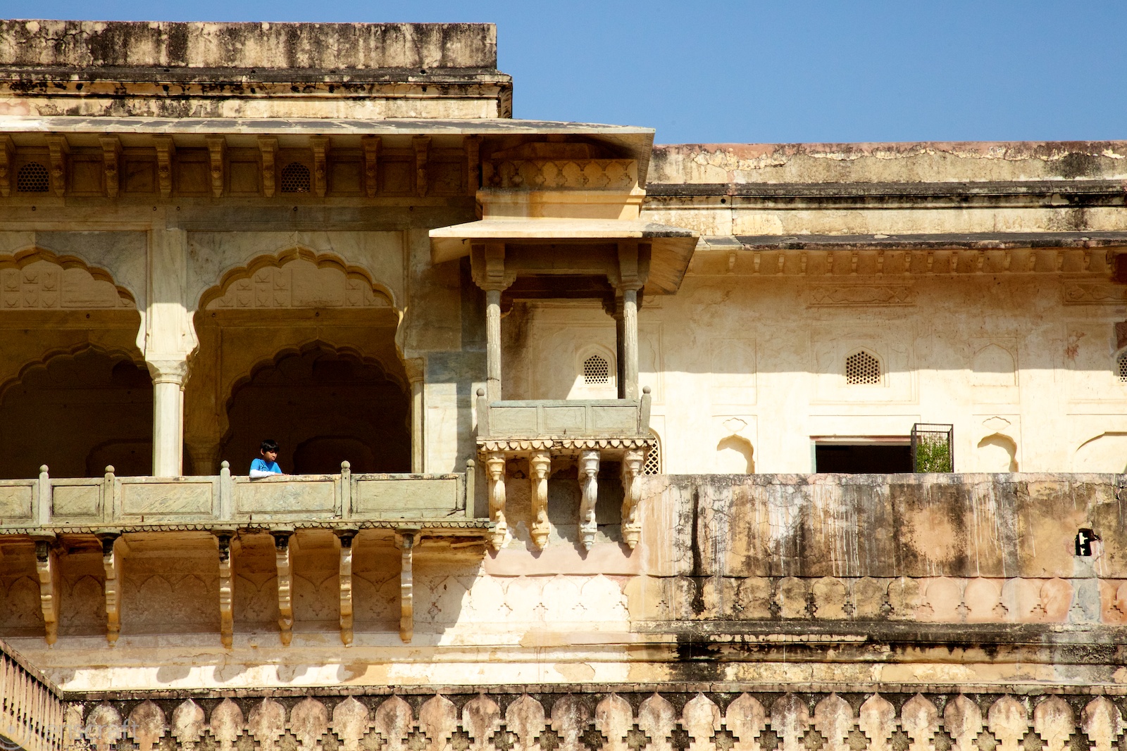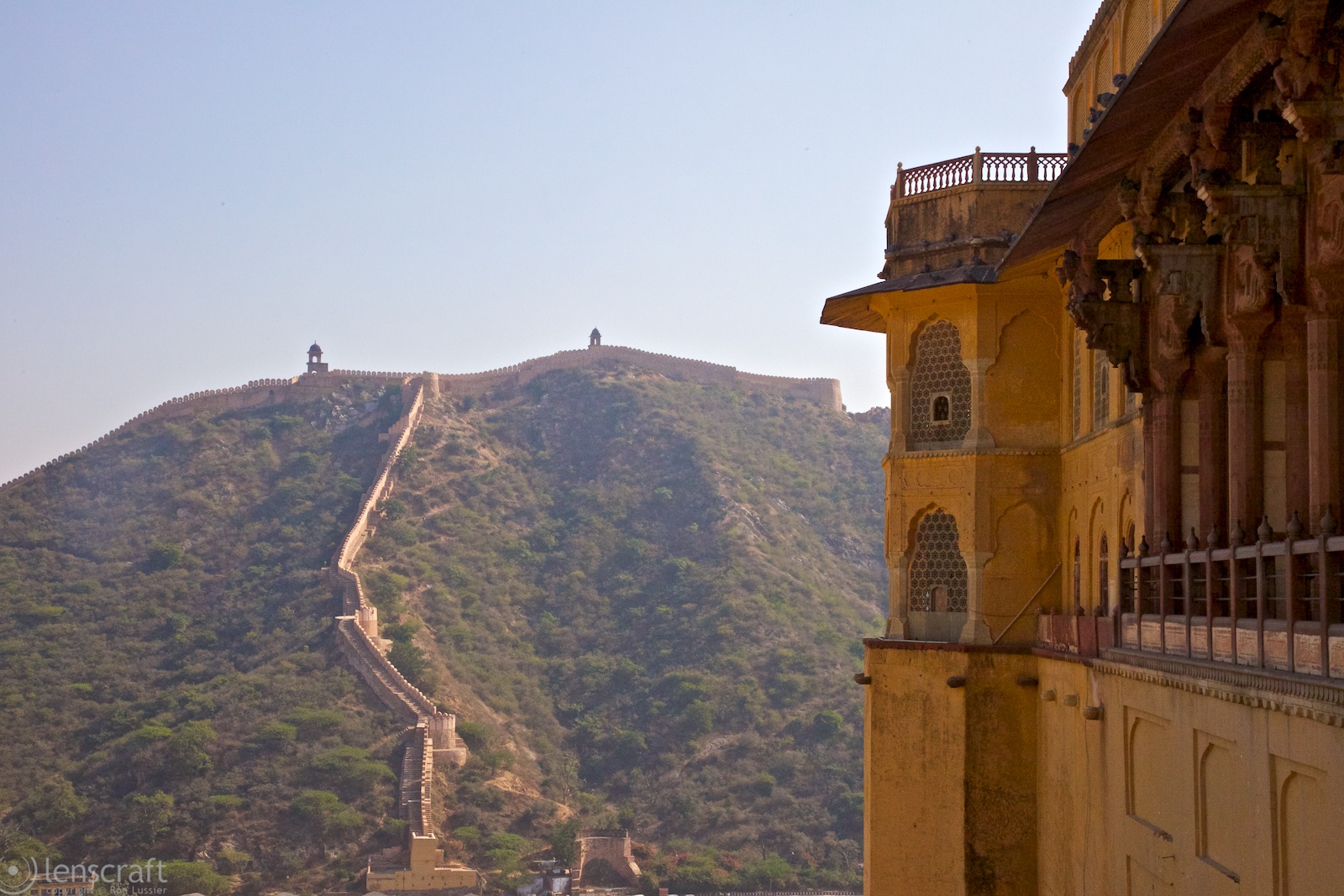 The next two days are a blur of castles, all ornate and fantastic. The Rajasthani of Jaipur were often besieged, and they built castles to repel attacking armies. The oldest, the City Palace, was originally a hunting lodge on the valley floor for when the Raj visited the Jaipur area to hunt tigers. Amber Palace was a little higher up on the mountain, built to defend. It included numerous arrow slits as well as two different walled paths to bring water to the castle from a nearby artificial lake. Nahargarh fort is at the highest mountain peak, and was built as a refuge for the queens & consorts during a battle.