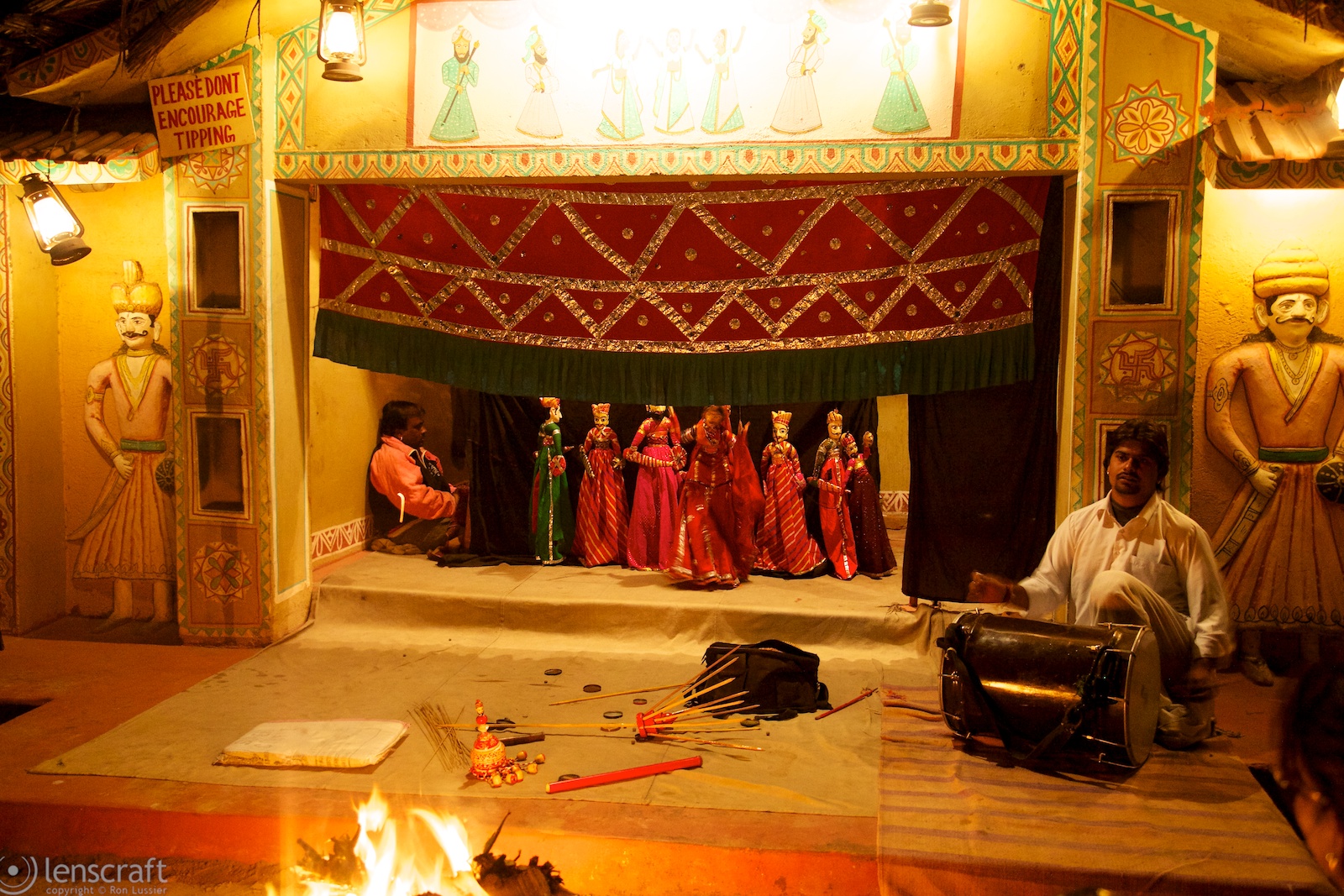 Maharaja Jitendra Narayan Bhup Bahadur of Jaipur still lives in the City Palace, and he wants visitors to his home to feel welcome. They’ve hired musicians and artists to entertain visitors to the City Palace, and on the day we visit there is an attempt at a Santa Claus roaming the halls in a horrifying mask clearly designed to terrify children towards goodness.