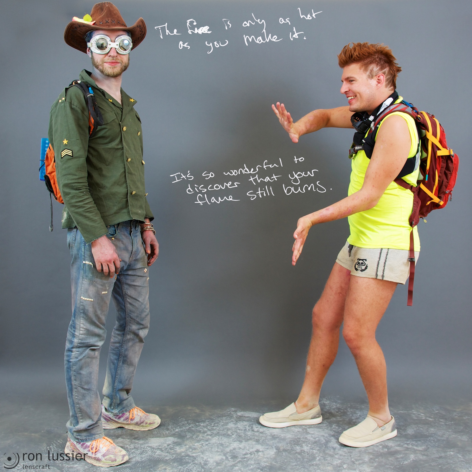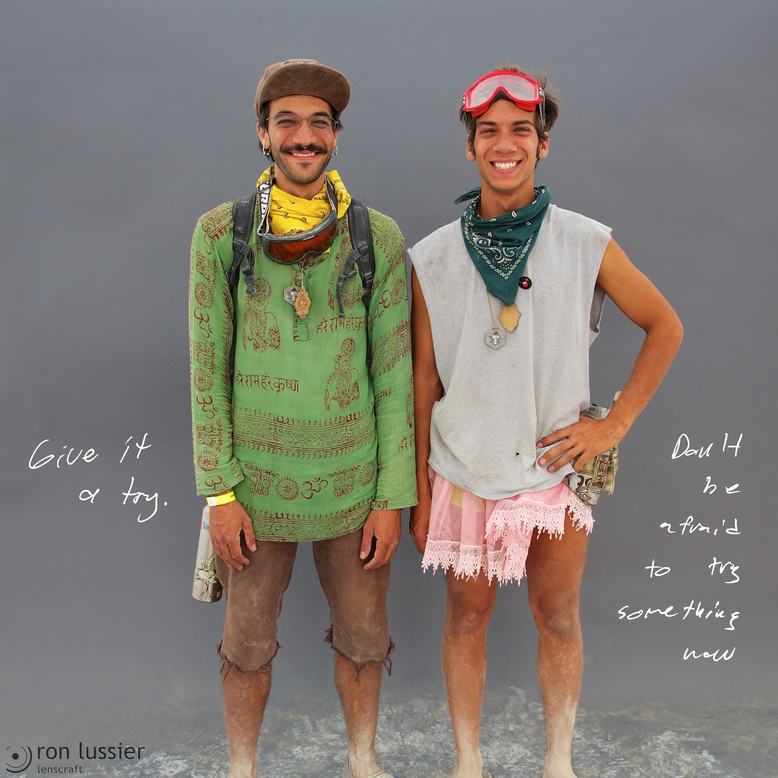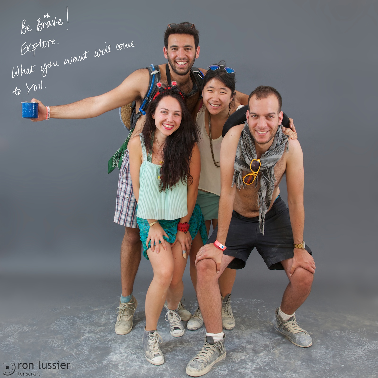 The first of the ‘Tribes’ series, these photos are of participants at Burning Man 2013. Β The participants were asked the answer the question “What message would you send in a bottle to the outside world?”