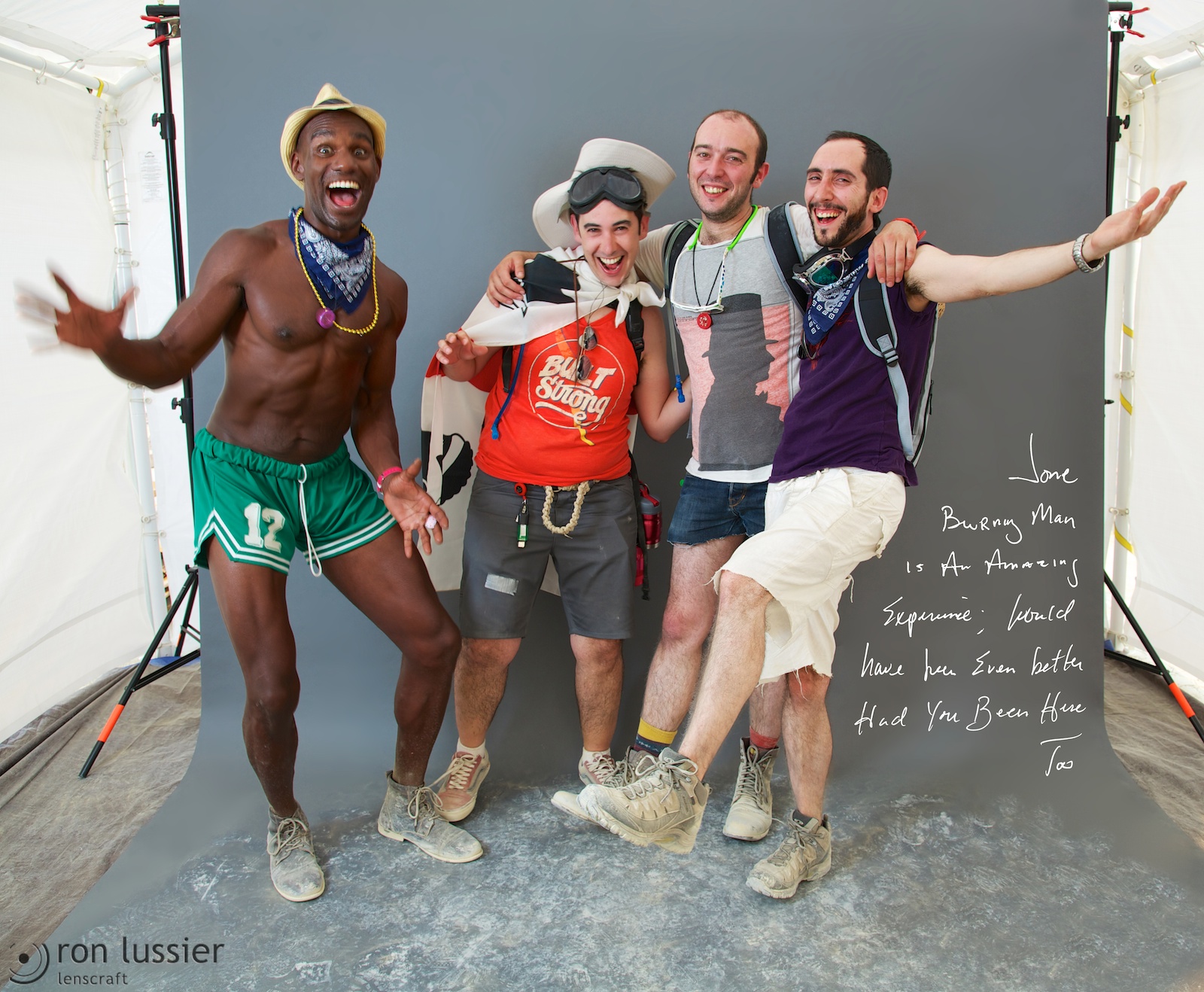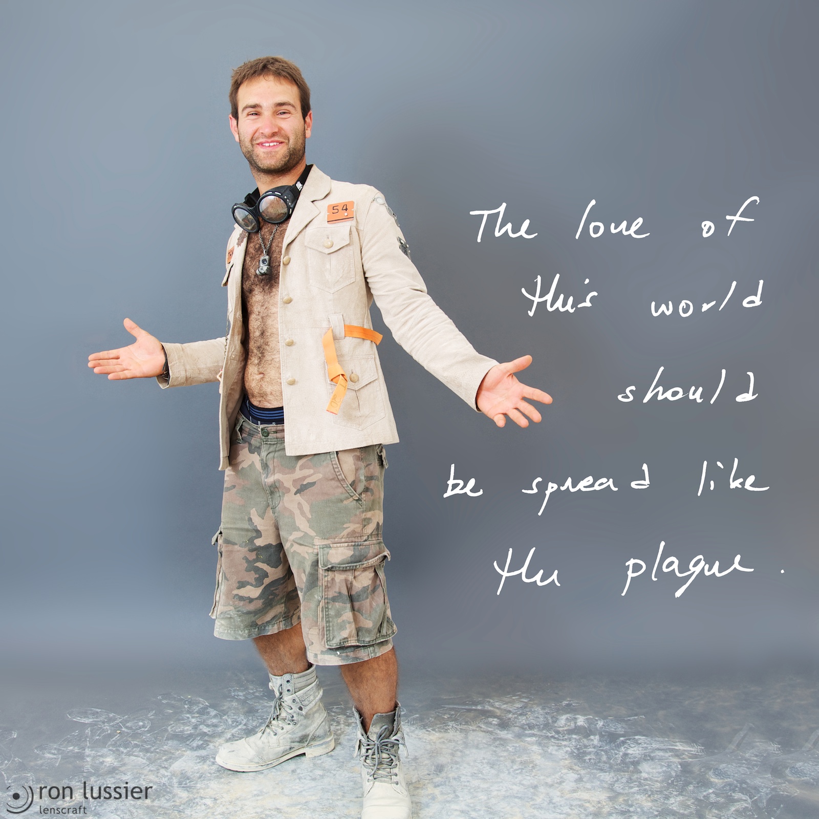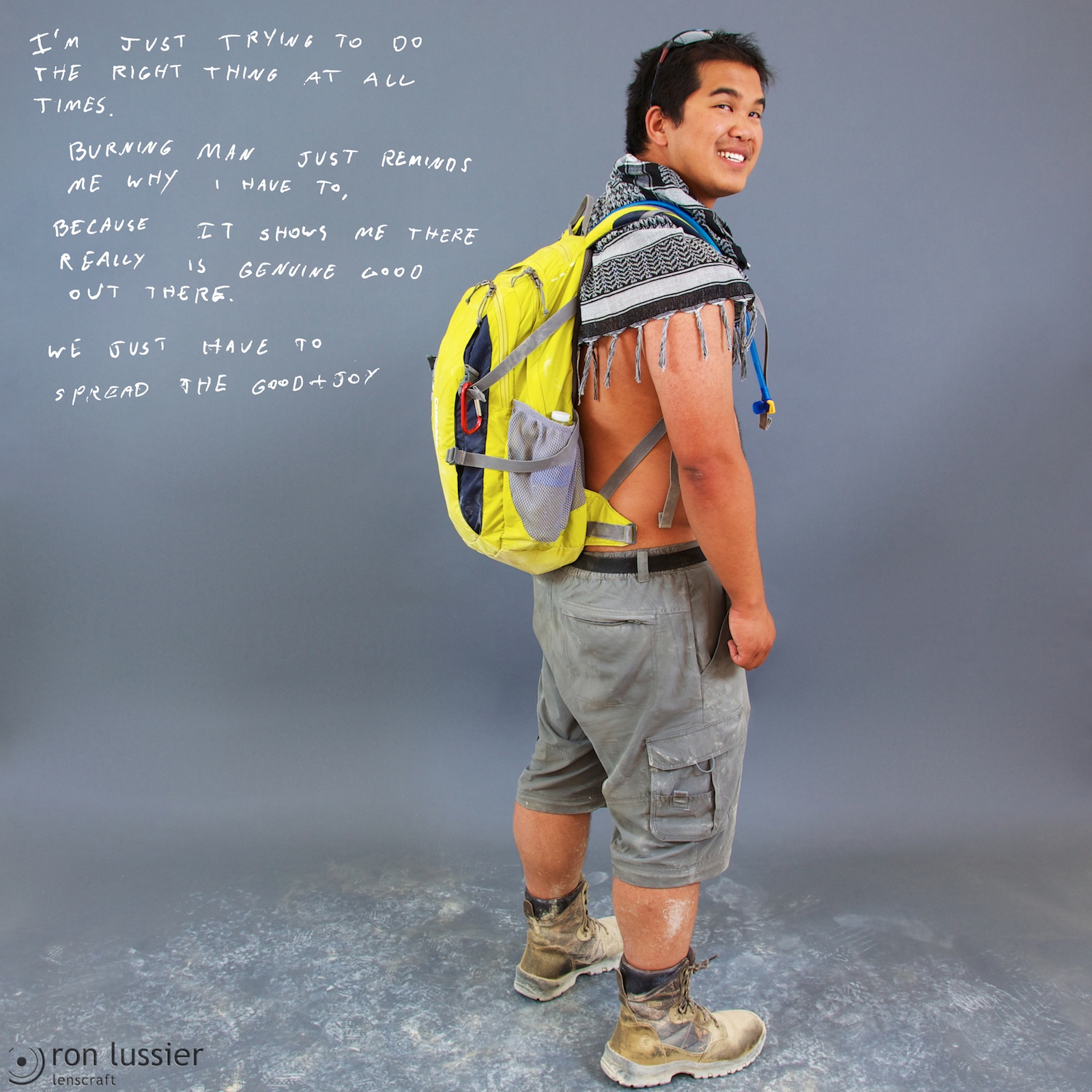 The first of the ‘Tribes’ series, these photos are of participants at Burning Man 2013. Β The participants were asked the answer the question “What message would you send in a bottle to the outside world?”