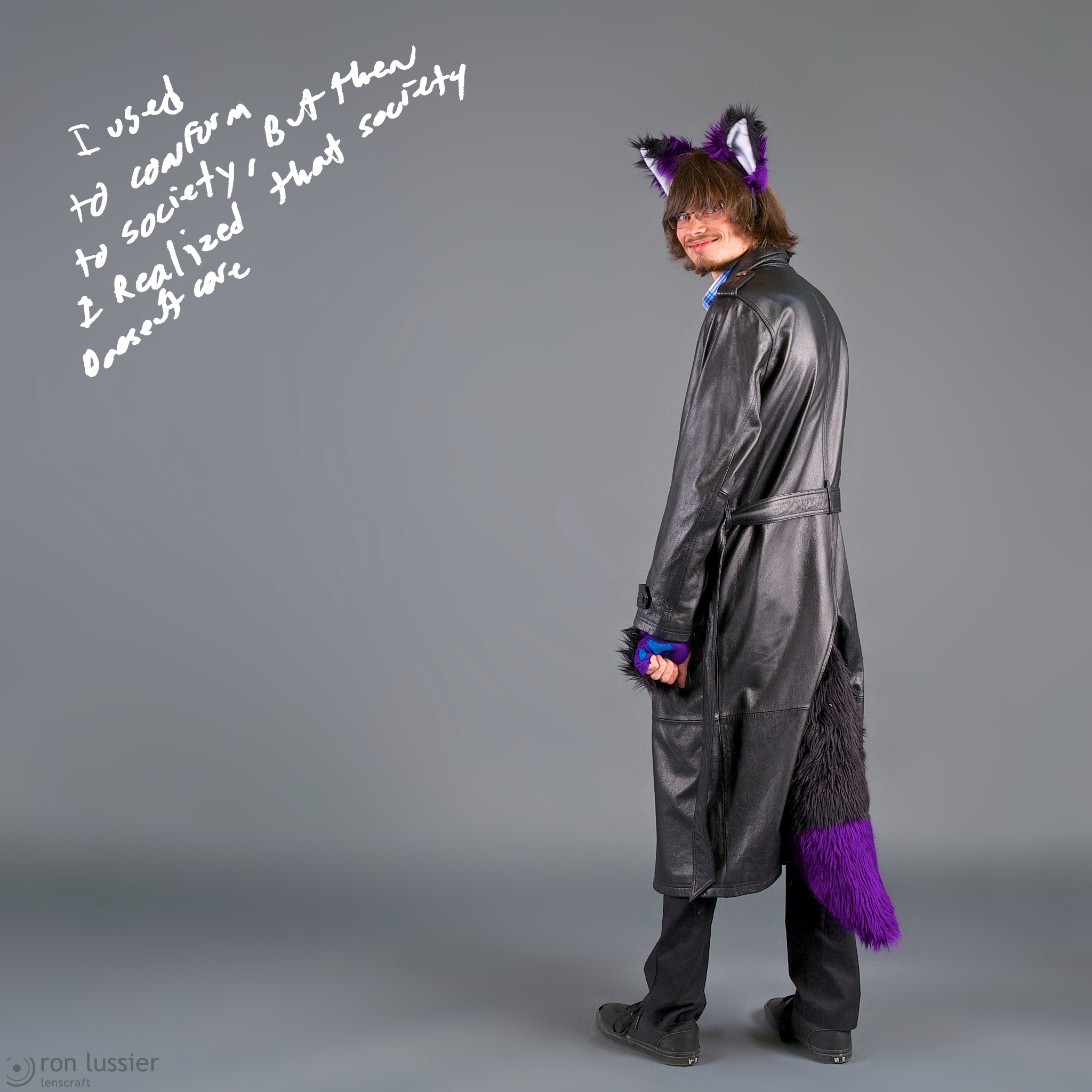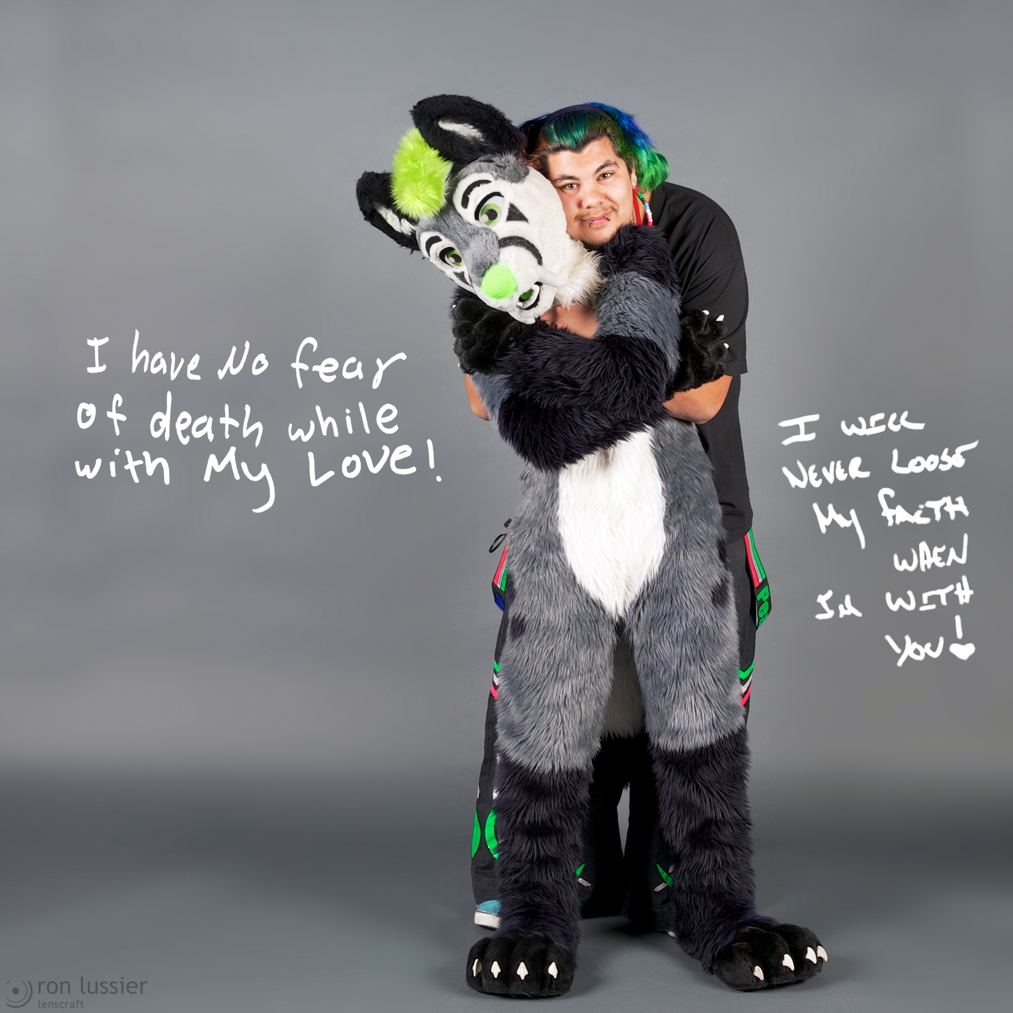 These portraits were taken at the Further Confusion 2014 conference in San José, California. Further Confusion one of the largest gatherings of Furry Fandom in the United States. Participants in the studio were asked to confess something in writing.
